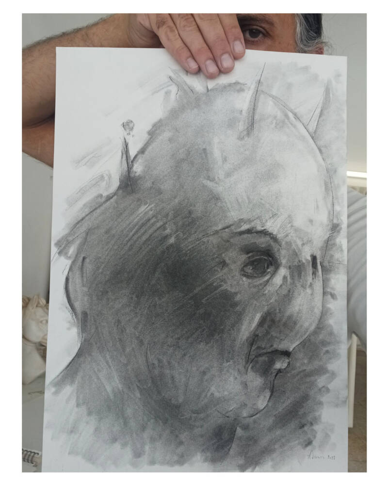 Each drawing begins or evolves through the lens of academic principles, but it is emotion and raw vision that guide the hand.