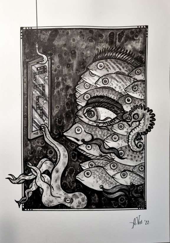 All my works are unique and mainly made with ink, rainwater and other mediums.