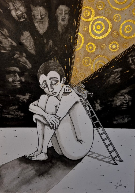 All my works are unique and mainly made with ink, rainwater and other mediums.