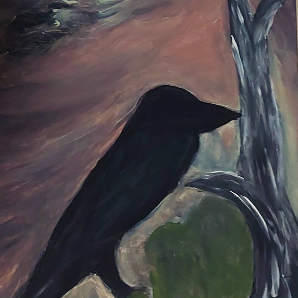 A quiet sentinel emerges from the shadows — the silhouette of a crow, still and alert, perched within the folds of a dreamlike landscape. This piece leans into subtle contrasts and textured depth, drawing the viewer into a moment of quiet observation. What is it watching? And what stories lie just beyond the frame?