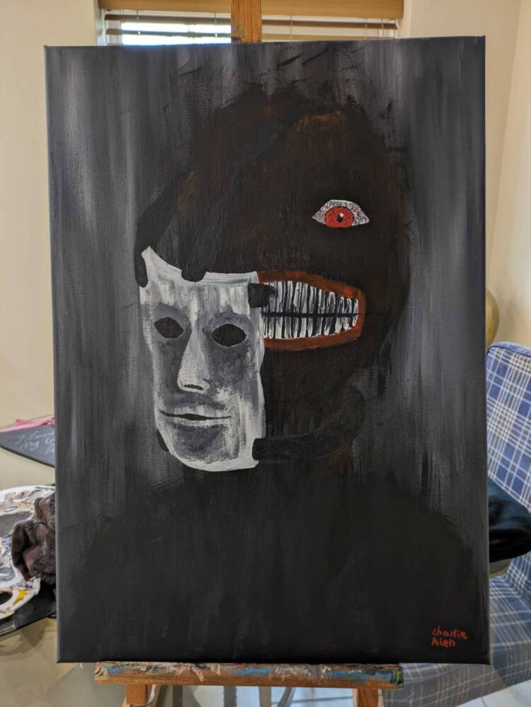 Inspired by my Autism and the idea of masking. With the feelings of when that mask slips away.