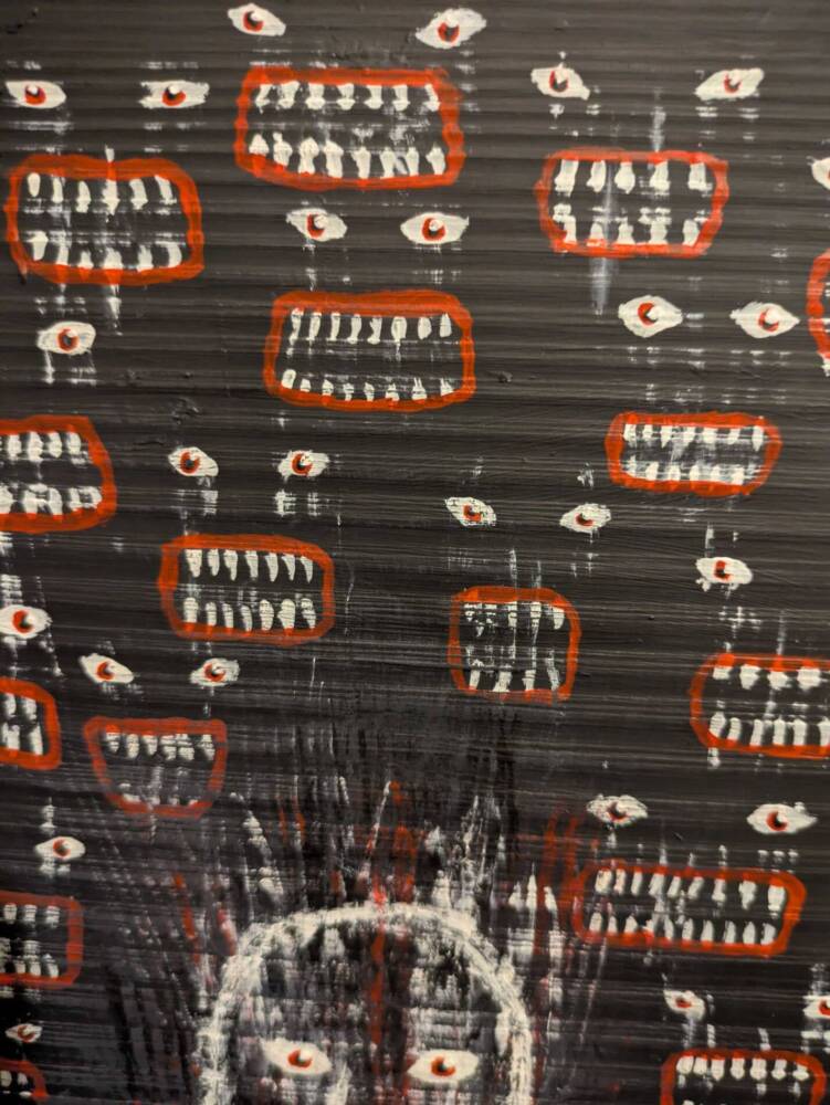 A depiction of the feeling of being stared at and judged from an Autistic POV perspective.