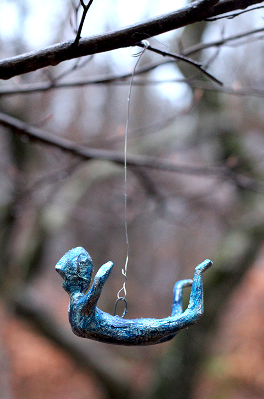 I made the Pain Princess first. My first ever sculpture. What a relief I felt, that my inner parts could escape from the 2-dimensionality of the paper and get out into the world! Then I wanted to complement her, and I made the Flying High part, so there would be more balance. And as usually – I take whatever material I can get my hands on – and they got hung up in the balance scale.