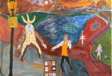 ‘Beatles at Smethwick Baths 1962′ was selected for The 2019 National Outside In Environments National exhibition and Exhibited at the Piano Nobile Gallery at Kings Place London 2019 28th October to January The famous Beatles performed at the Smethwick Thimblemill Baths, back in November 1962:- just as they were achieving widespread fame. A member of my family was in the audience that night. I regularly swam at the pool and often looked up to the stage area whilst swimming…. thinking of all the famous 60’s groups that performed there. The Smethwick Baths closed in 2024 and was a great multiuse Environment catering over the decades since 1930’s for swimming, Ballroom Dancing and Concert uses engaging with the community across diverse recreation activities, to provide an inclusive environment responding to change and needs overtime. It is a listed building which has stood the test of time. The Swimmer in the picture is me .The Beatles are pictured very young as they looked 1n 1962 and on that day: November 19th 1962, they performed 3 times Firstly at the Cavern Club Liverpool in the Afternoon, and then down 85 miles to Smethwick near Birmingham for an early evening performance and then on to West Bromwich for the Final performance. The Hectic performance schedule was especially tiring for the energetic Drummer who had to set up the drums 3 times and then engage with a physically demanding performance. The momentarily distant expression on Ringos face reflects he has not yet realised [since he is positioned behind] that the rest of the band are all smiling for photos. Hence the alternate Title for the painting: The Loneliness of the long Distance Drummer’