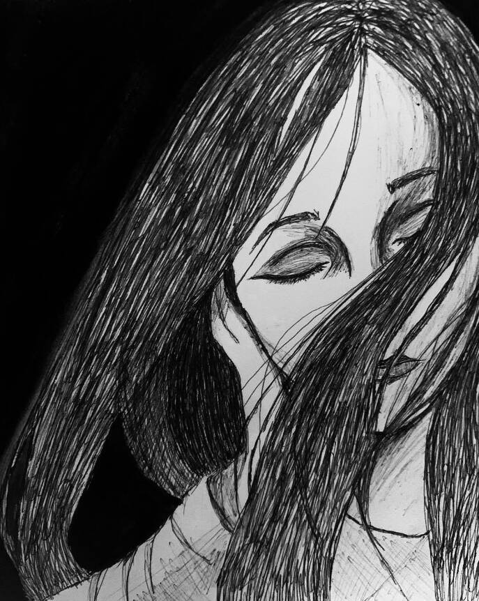I found an old photo of myself with that had a dreamlike feel to it and decided to draw it. The photo to me represents fatigue as it shows up for me, as an artist with a medical condition.