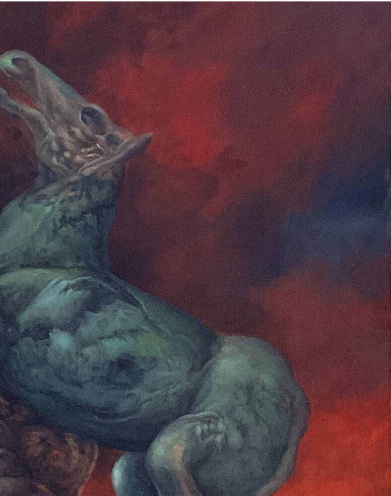 National Epitaph stages a crumbling monument to a nation’s unresolved traumas. Inspired by the recent riots in Serbia, represented in my own visaul language. The sculpture is fractured, overrun with indistinguishable organic matter and skull-like forms, swallowed by the very land it was built to glorify. This ruin does not commemorate glory, but instead mourns the cyclical violence and ideological decay that plague post-conflict societies. National Epitaph stages a crumbling monument to a nation’s unresolved traumas.