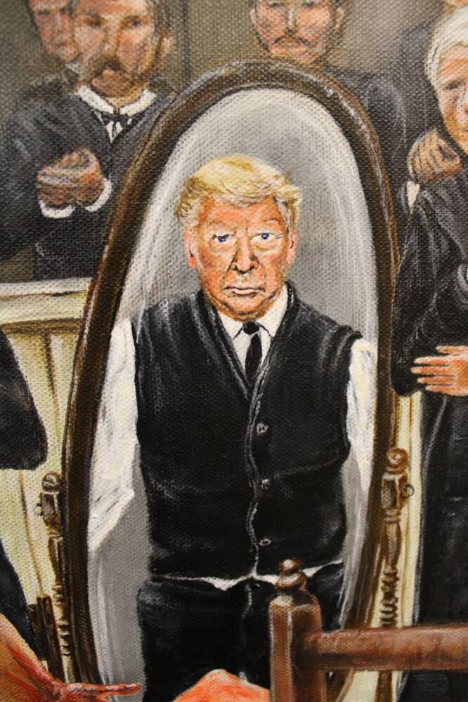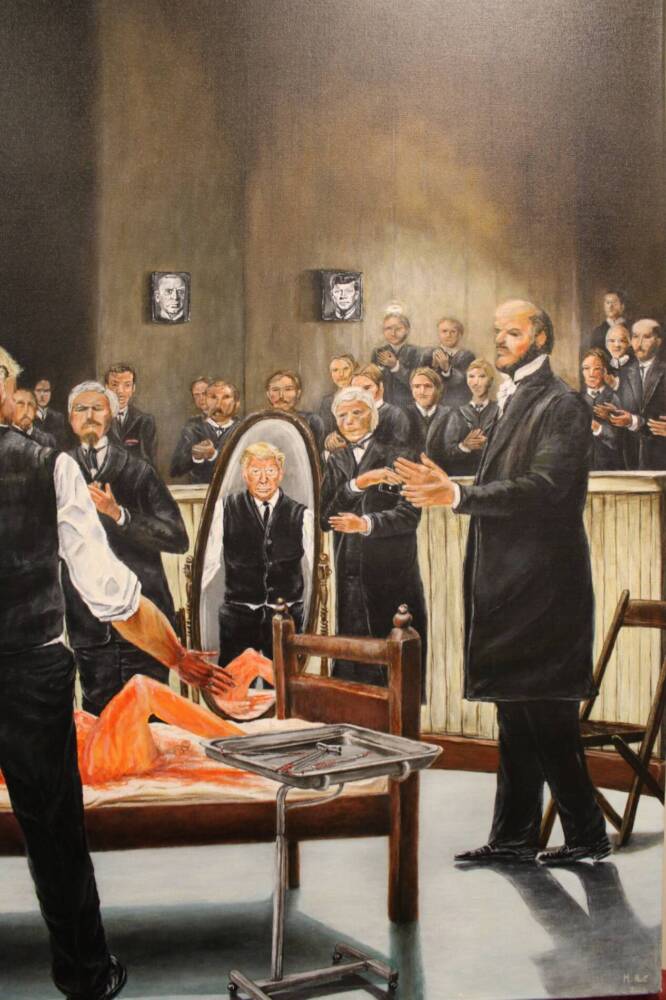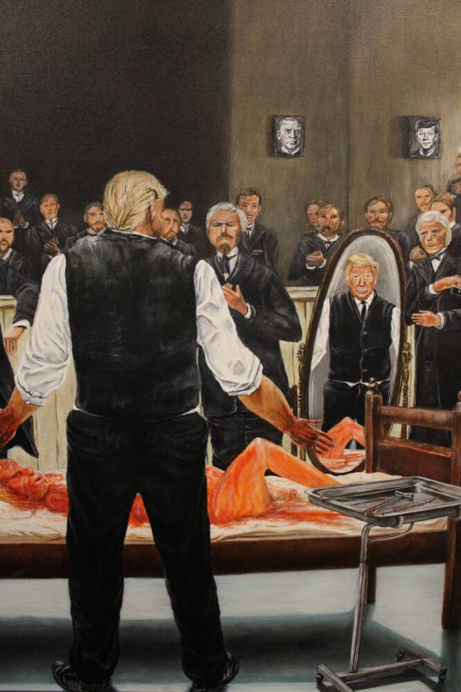 It’s promise of hope, freedom and opportunity for those seeking a new life. Lady Liberty now lies lobotomised and mutilated to fit Trumps standards of race and religious segregation. The portion taken out representing the freedom to be yourself.