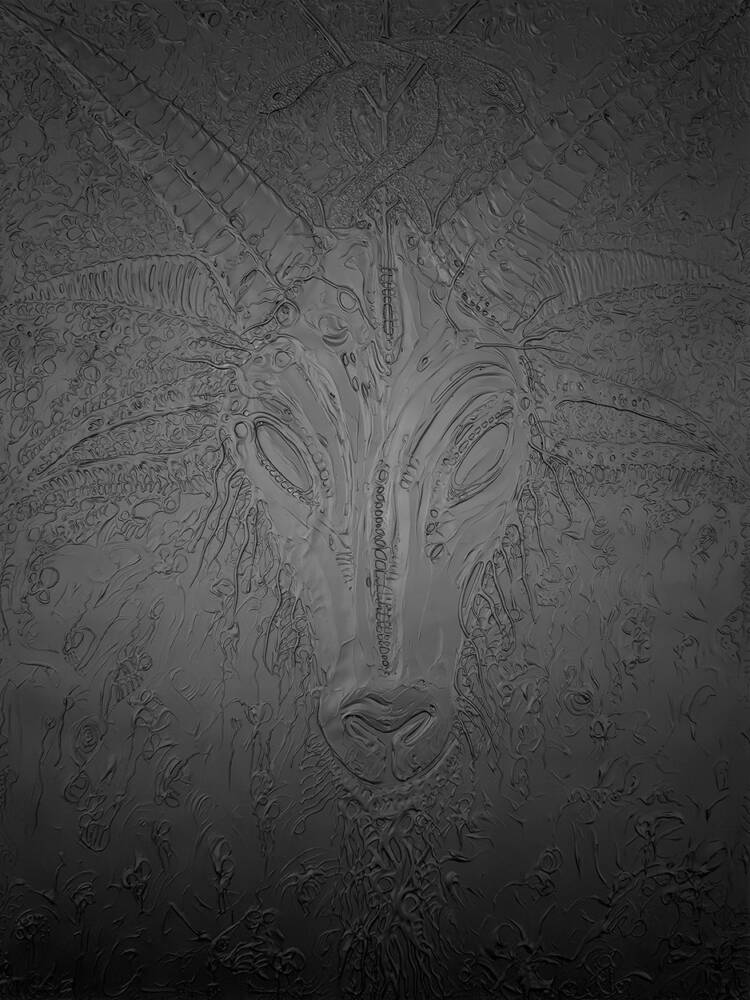 Among the latest in the “Blackened” series and another, albeit unique, revelation in the occult essence and ideology attributed to the Baphomet; the lord of inspired creation, the Sabbath and a spirited guide to the underworld. The ‘black on black’ style lends itself to change, based on location and (guided) influence of light as it turns any keep to a ritualistic space in sound devotion to the esoteric, aesthetic philosophy and the arts alike.