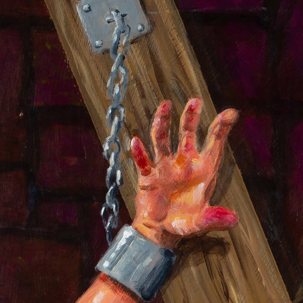 Bound to the St. Andrew’s Cross, she subverts the traditional role of the captive. Through my brush, I have reimagined her not as a victim of her shackles, but as a predator driven by an insatiable desire. Her scream is a clamor of hunger and sovereign power—a sound I have sought to make visible through the contrasting textures of her skin, the silk of her corset, and the cold, unforgiving wood of the cross.