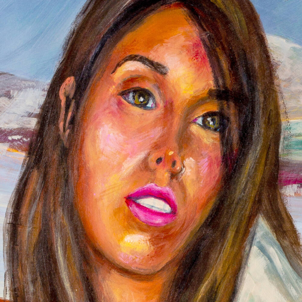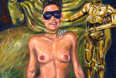 In this piece, I explore the boundary between invitation and danger. I have portrayed my muse, Leina, looking fixedly at the spectator with a gaze that is both a challenge and an offering. She allows her clothing to slide down, revealing her exuberant breasts with a sense of pride and a complete lack of shame.