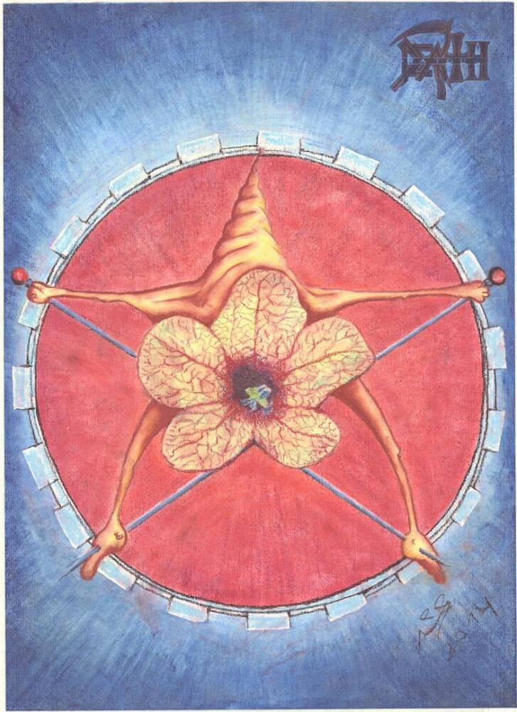 During the gig of Death on Graspop Metal Meeting, this drawing came as a vision. So I made a one minute sketch during Leprosy to not loose it. The flower is the dangerous Henbane, one of the three most important ingredients for witches’ointment and growing in my garden.