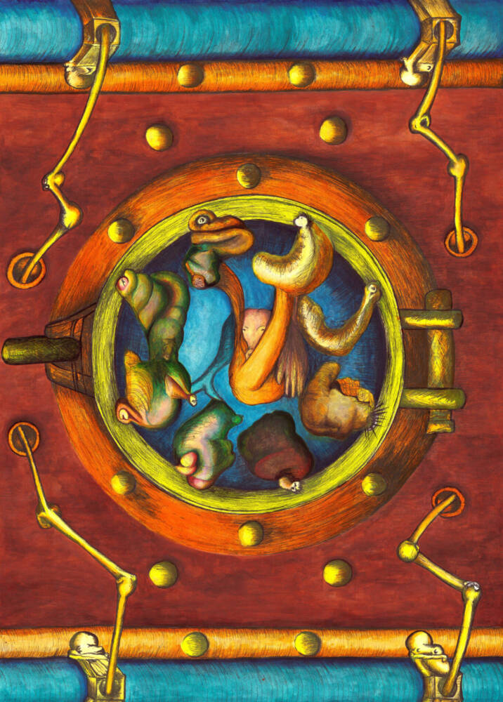 Originally painted for “Kanaalvissers”, a local band, but they never used it as their logo. Later renamed by what came in mind.