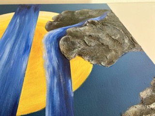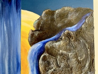 Created with different types of modeling paste and acrylic paint on a 20″ by 16″ inch stretched canvas. Sealed with a matte gloss varnish.