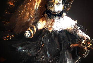 Medium: Poreclain dool, feathers, acrlyic, makeup, lace, keys, nails