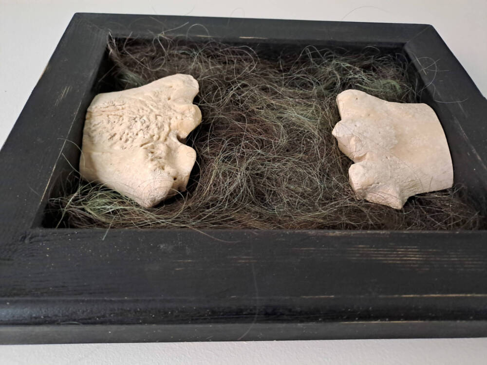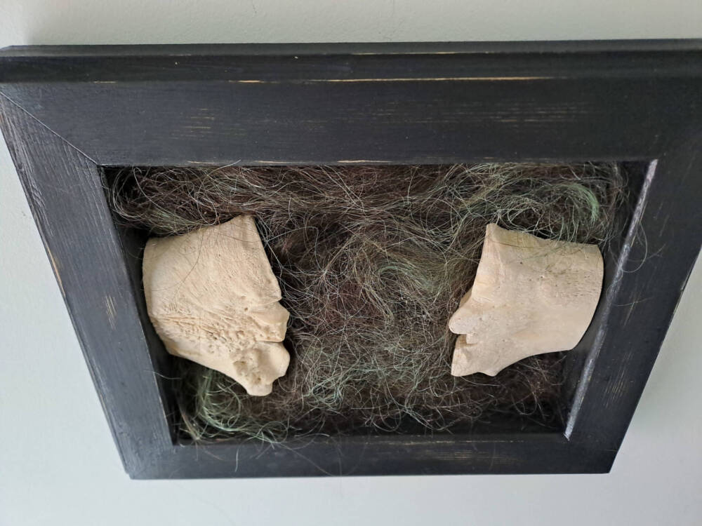 The entangled treads of hair represent all of that, a constant background in their lives, whatever the distance between them, whatever they say – even if all of that is constantly nourrishing that space, filling it, modifying it.
