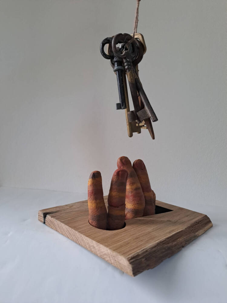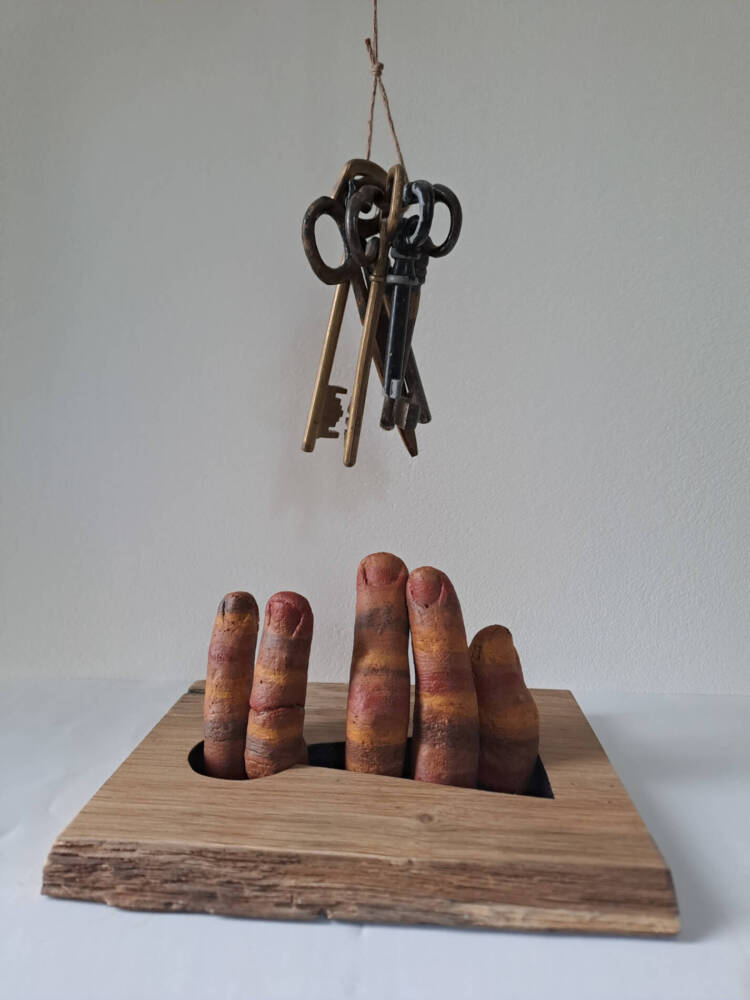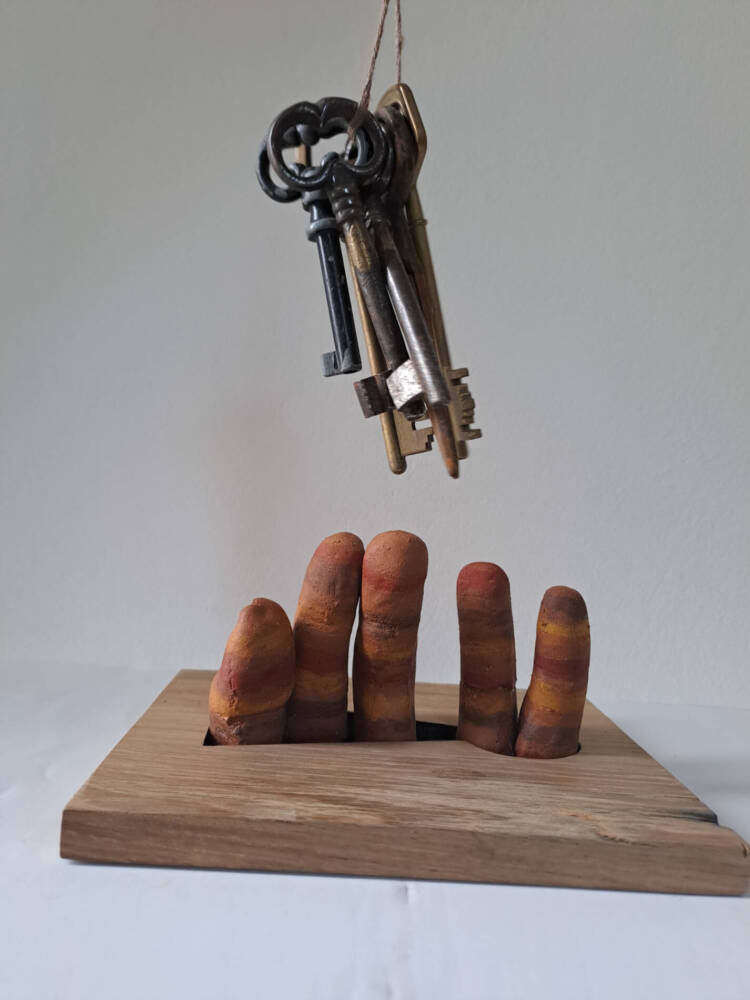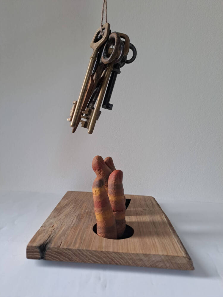 Trying in vain to get the keys to freedom, close enough to think it is reachable, far enough to never be able to actually reach them. Becoming petrified in the meantime, so long it has been, stuck in this uncomfortable position…