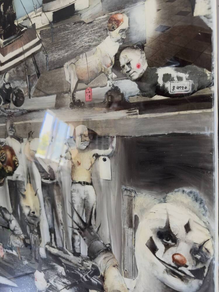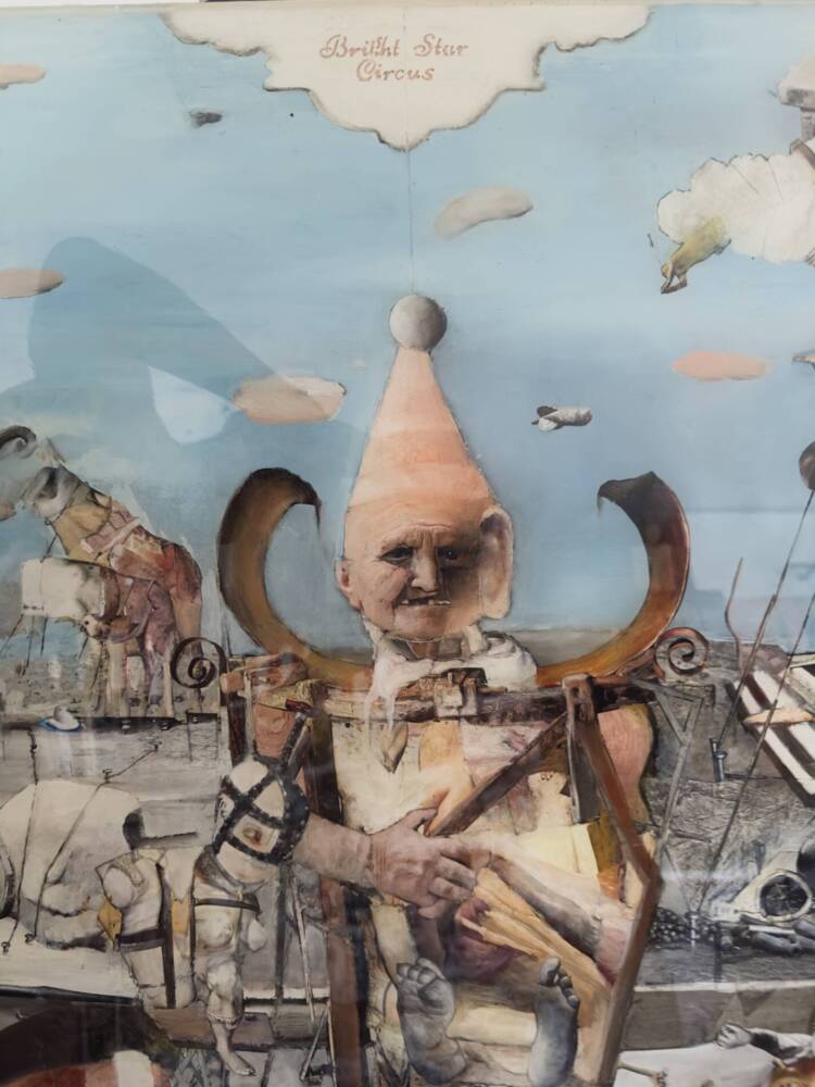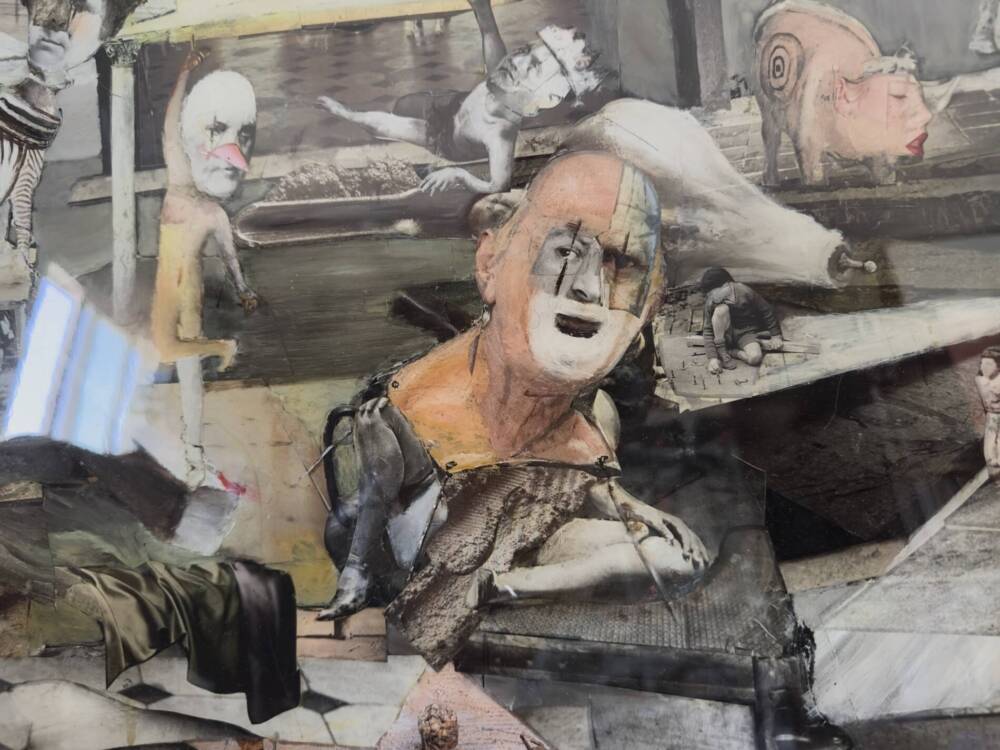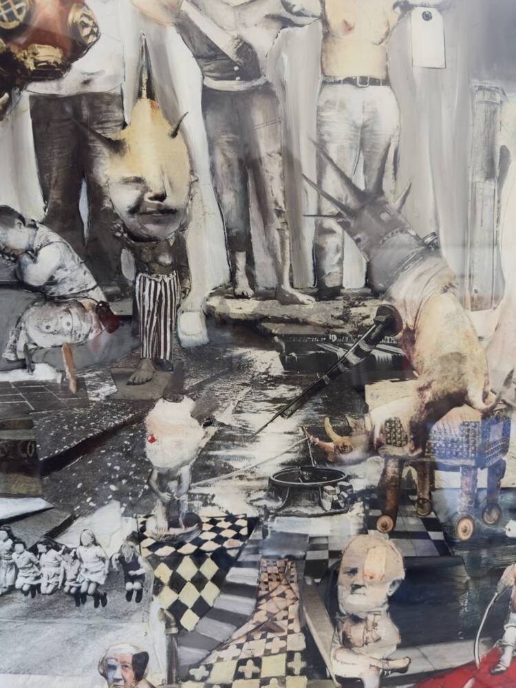 Medium: Collage, Oil paint, resin on wooden panel