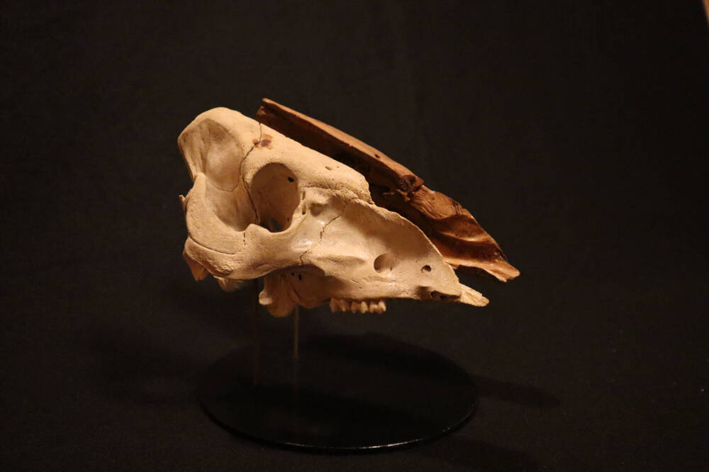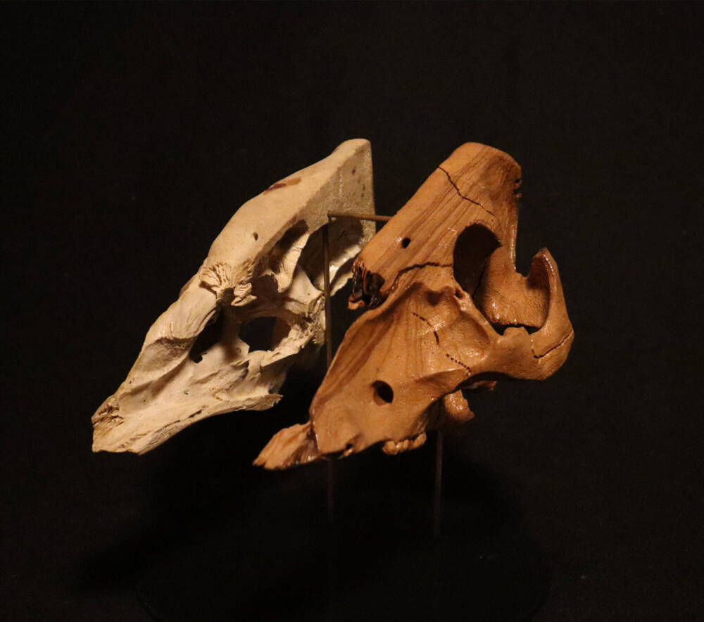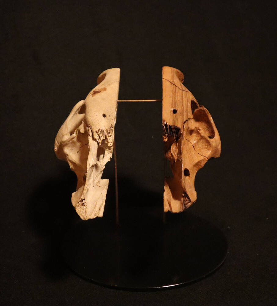 The template and one half for this work is a pig skull, cleanly dismembered by the butcher and then presumably captured by a scavenger, it was found in a field at the edge of the forest.