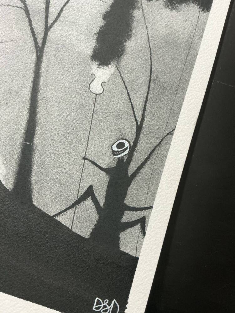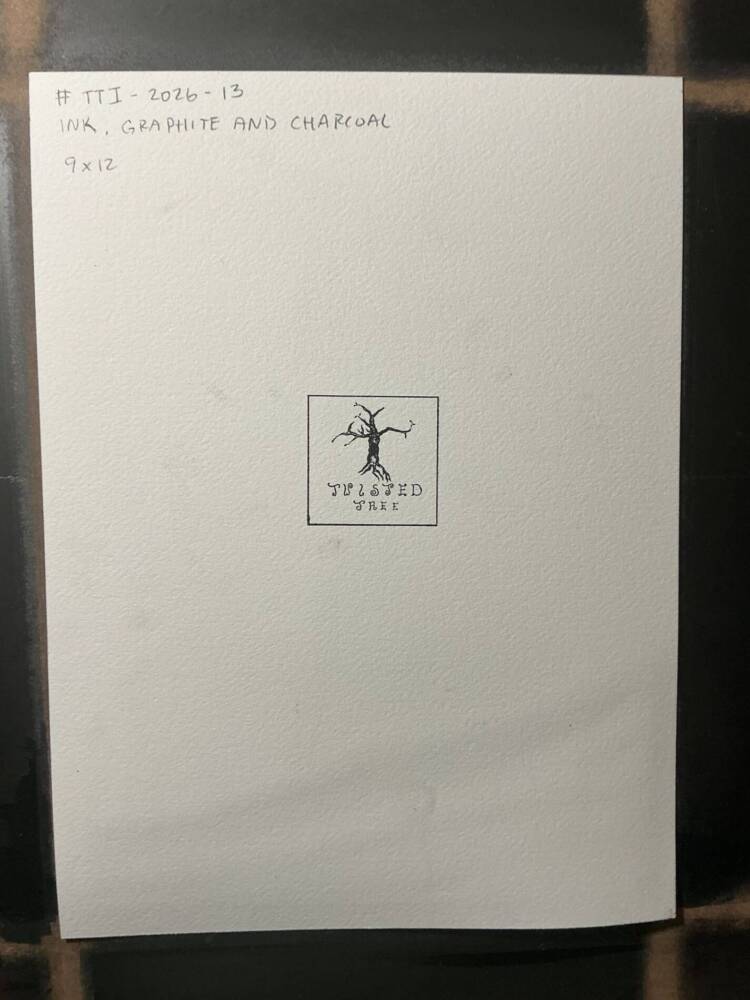 Ink, graphite and charcoal on 100% cotton paper. The size is 9×12, but please note, the size is slightly larger than 9×12 and will not fit a traditional 9×12 frame. Please consider matting for an 11×14 frame, or talk to your local framer for options.